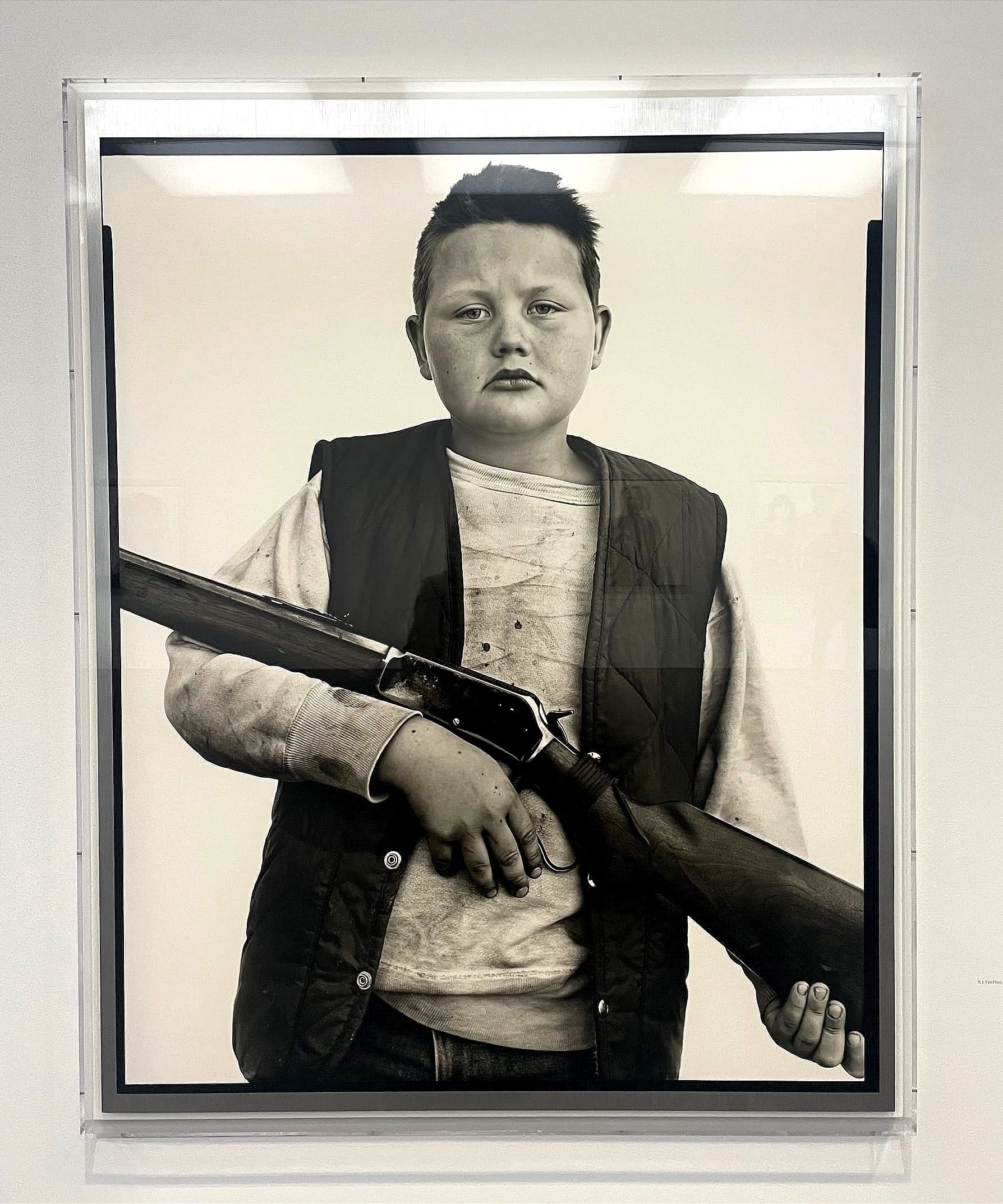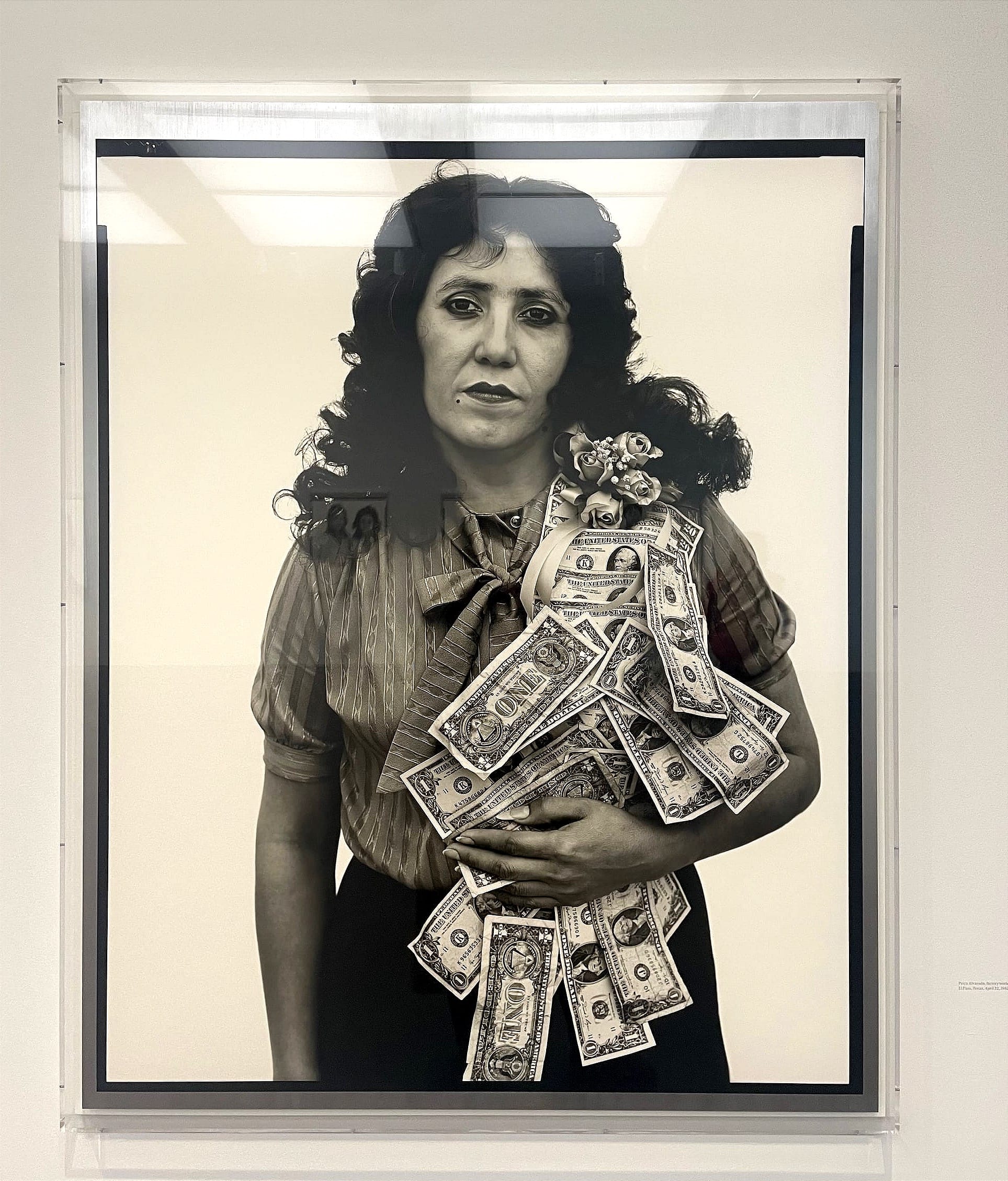Avedon’s portraits are defined by sharp focus, high contrast and a stripped back setting. His subjects stand alone against blank backgrounds, their clothes and objects such as guns, flowers and banknotes becoming clues to their social world. These images feel direct and unprotected. The camera seems to insist on visibility, fixing each person in a moment of exposure. We do not encounter them as private individuals but as social figures shaped by work, class and circumstance. There is something confrontational in this clarity, as if the photograph forces both subject and viewer into an uneasy exchange of gazes.