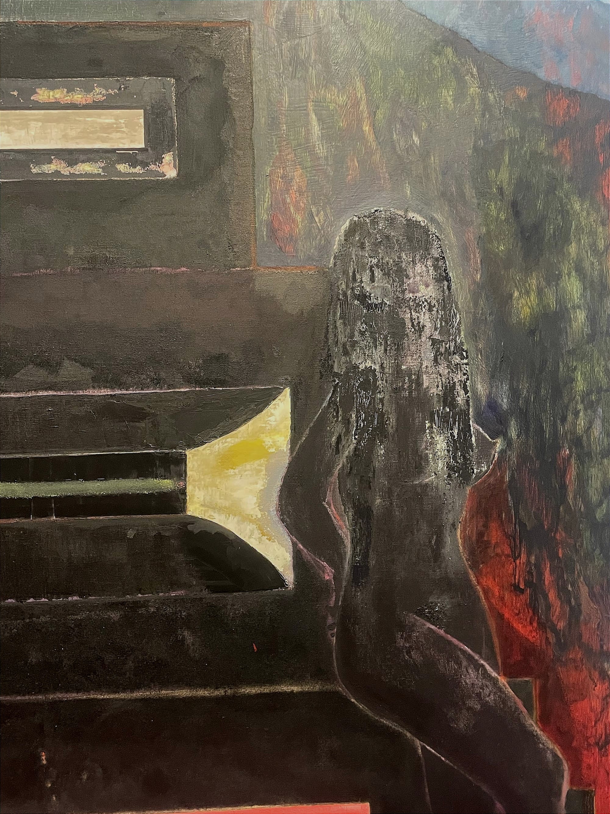 Doig’s figures, by contrast, seem caught in a moment of inner drifting. Rather than confronting the viewer, they recede into environments that blur into memory or imagination. Their forms are softened by layers of paint, and their actions appear unfinished, as if occurring within a private mental space rather than in the visible world. This suspension feels inward rather than outward. The figure is not held in place by the gaze of others but by its own perceptual and emotional atmosphere, hovering between presence and disappearance.