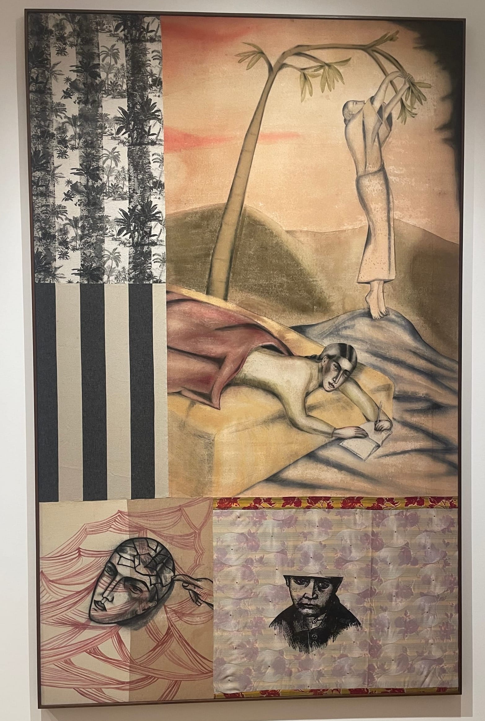 Dodiya, in a different register, turns toward the psychological interior. Through watercolor, textile layering, and a restrained yet expressive figuration, she constructs spaces of contemplation and withdrawal. Her figures often appear caught in moments of introspection or quiet fracture, suggesting the psychic labor of selfhood rather than its performative display. Drawing on mythological and domestic references, Dodiya situates the individual within a complex network of historical and emotional inheritances. The theatricality of her mise-en-scène does not produce spectacle but a heightened sense of interiority, where vulnerability becomes an act of resistance against the expectation of transparency.
